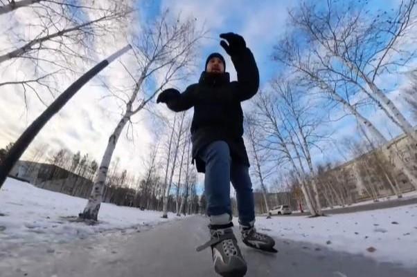 Погнали! Блогер из Югры прокатился на коньках по улицам города — видеоПогода преподносит югорчанам сюрпризы, превращая дорожки в каток